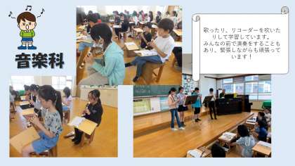 音楽科の学習では、歌やリコーダーの練習をがんばっています。