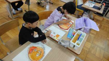 【4組】図工 絵の具を使って