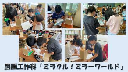 友だちの作品を見合って、鏡の特徴を生かした工夫を探しました。