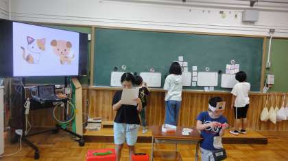国語の時間に「討論会」をしました。「犬と猫」「夏と冬」など2つの中から自分の意見を決めて、理由を付けて発表しました。発表する人以外は、ホワイトボードに聞き取ったことをメモしました。わかりやすく話したり、うなずきながら聞いたりすることをねらいとして頑張っています。