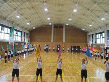 運動会に向けての練習を始めています。今は曲に合わせて様々な動きの練習を覚える活動を中心に行っています。本番に向けて、まずは自分の動きを合わせていきましょう。