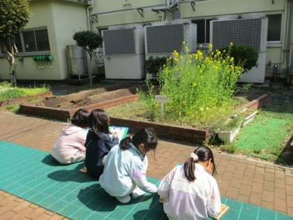 今日は図工の学習で、春の季節を感じるものを絵に表しました。1年生のころから大切に育てている花や花壇の花を楽しく絵に表すことができました。