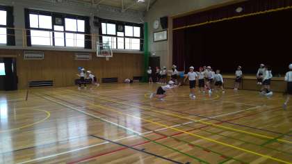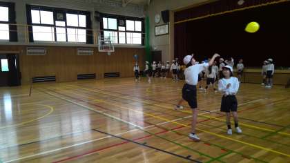 体育で体ほぐし運動をしました。自分の体の様子に気づいたり、友達と仲良く活動したりすることをめあてとし、楽しんでいる姿が見られました。ふうせんバレーでは、友達と協力し、「がんばれ!」「ナイスナイス!」と温かい声かけもありました。