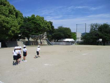 体育の学習では、なげあそびの学習を進めています。遠くまで投げるにはどうしたらよいのかを考えながら、ゴールに向けて投げる様子が見られました。一生懸命取り組む姿が素敵でした!