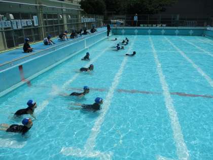 今日は水なれで、水のかけ合いっこをしたり、プールの中をぐるぐるお散歩したり、わにさん歩きをしたりしました。来週からは、様々な水あそびをする予定です。たのしみにしていてくださいね。