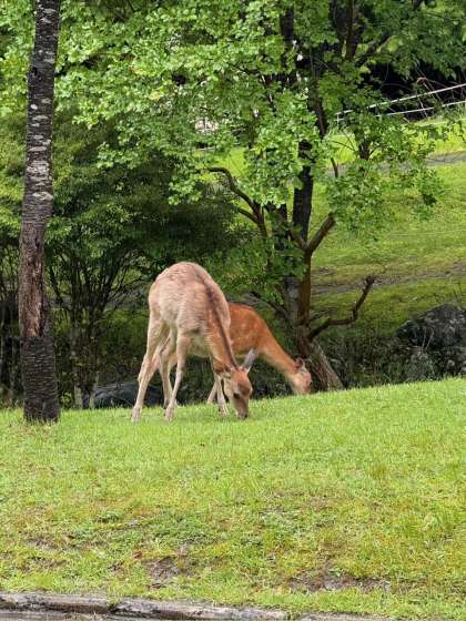 プレイホールに行く途中、鹿に会い、嬉しそうにしていました。