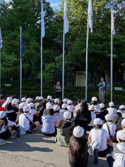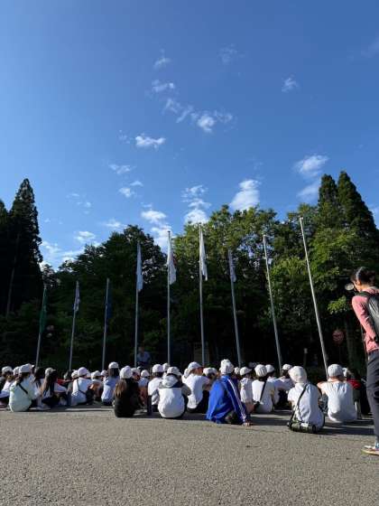 3日目の朝、快晴です。6時に起床し、まだ目が覚めてない中、3日間使用した布団やシーツ、枕の片付けを生活係を中心に行いました。自分の荷物は自分で片付ける、来た時よりも美しくを心がけながら、朝の準備を進めました。