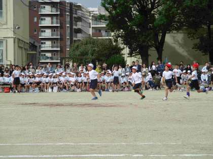1年生にとっては、小学校で初めての運動会。50メートル走では、腕をしっかりとふり、元気いっぱいにゴールをめざしました。
