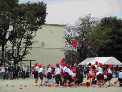 団体競技「エビカニダンス玉入れ」では、かわいらしいダンスと白熱した玉入れを披露しました。