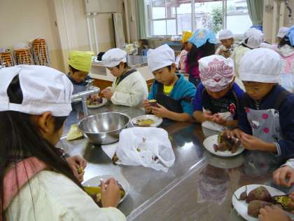 2年生が育てて収穫したサツマイモをみんなで食べました。