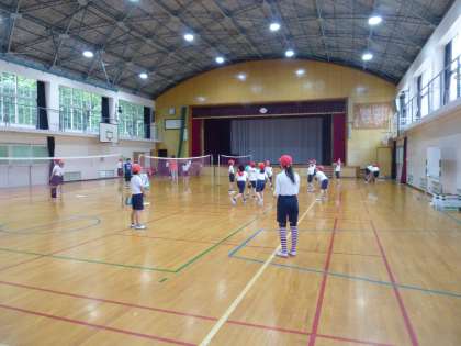 体育の学習では「ソフトバレーボール」をしています。始めはなかなか上手にボールをとばせませんでしたが,だんだん上手にとばせるようになりました。さらに上達するようにチームで協力して頑張ってほしいと思います。