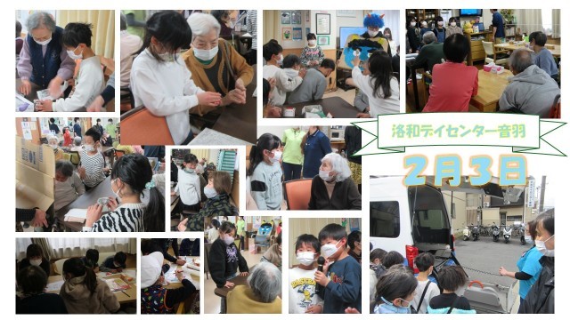 その後は、お年寄りの方々と塗り絵や豆まきなど、一緒に楽しく活動して、歌のプレゼントをしました。