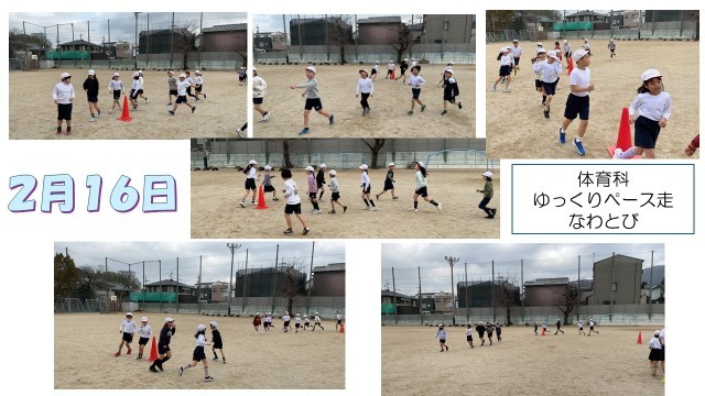 体育では、「ゆっくりペース走・なわとび」が始まりました。
