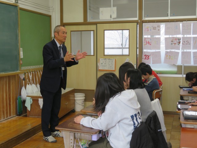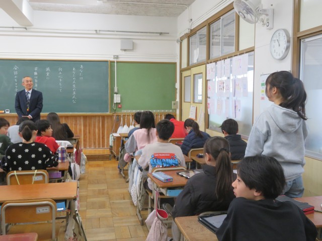 卒業を控えた6年生に向けて、校長先生からお話をしていただきました。「あなたは あなたの人生の 主人公」この言葉を大切にしていきたいですね。