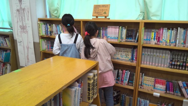 オリエンテーリングの最後は、本を借りて、どの子も真剣に読んでいました。