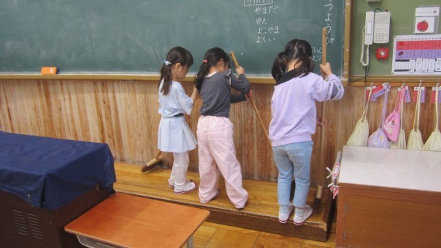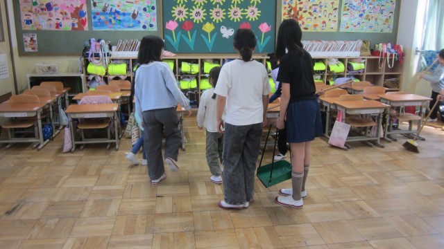 1年生は6年生にそうじの仕方を教わりながら、できることが少しずつ増えてきました。