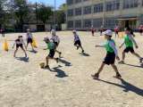 現在、体育の学習ではサッカーをしています。それぞれチームごとに作戦を立てて、ゴ...