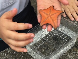 一人一つヒトデを渡していただき触れあっています。ヒトデをひっくり返してみました。さあ、どうなるのでしょうか?