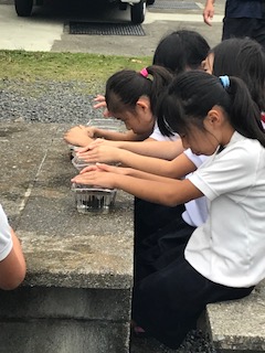 マリンランドの方に来ていただき、野外炊事場でいろいろ観察中。
