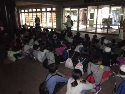 あいにく天気は曇りで星空は見えませんが、プラネタリウムや望遠鏡、星のお話を聞きます。
