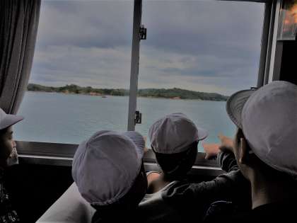 船長さんが、校歌歌って下さいってリクエストされたので、元気に2番まで歌いました。