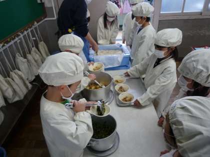 1年生は、どのクラスも自分たちでしっかりと配膳してくれています。