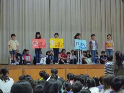 2年生から6年生がそれぞれの1年間の学年目標を発表してくれました。