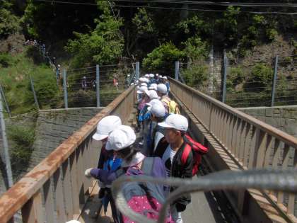 学校から山登りの入り口までの距離が思って以上に遠く,子ども達の中には少しバテている人もいましたが,士気は十分。グループ毎に出発です。