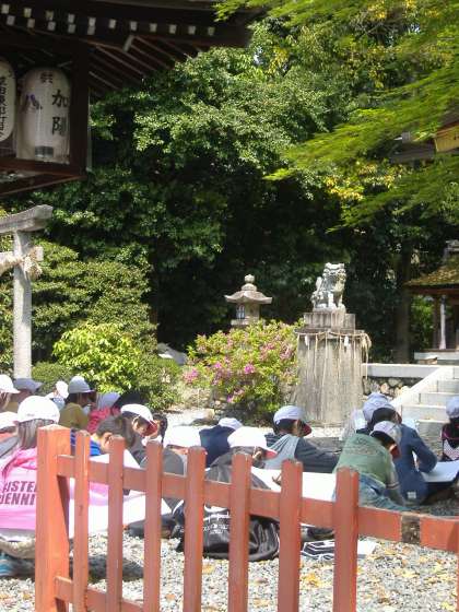 今日は連休の間の登校日。お天気に恵まれ、あたたかく気持ちの良い日でした。音羽小学校前の若宮神社へ、学年でスケッチに出かけました。古くからある、伝統的な日本の建物の特徴をよく観察し、丁寧に心をこめて描きました。