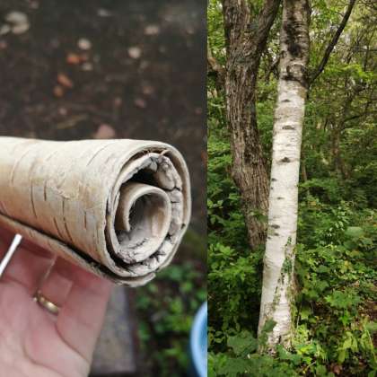 白樺の木の皮は火種になり,軽いという特性をいかして釣りの浮きとして