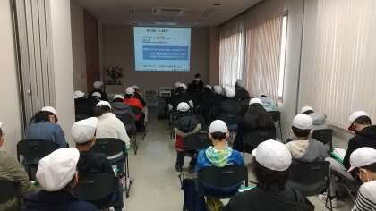 子どもたちは、平和資料館の職員さんのお話を聞いています。