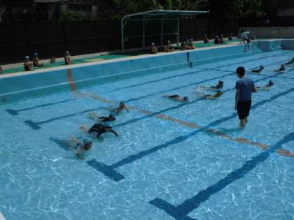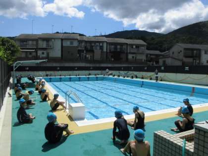 低水位ですが,水泳の学習が始まりました。