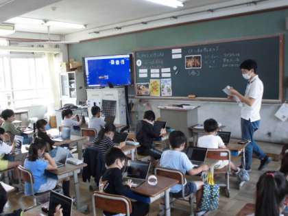 こそあど言葉を使って分を考えたり,鑑賞カードを見て題名を考えたりしました。
