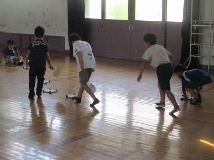 団扇や下敷きで扇ぎ,進んでいく車に対して,なんで進むのかを考えました。