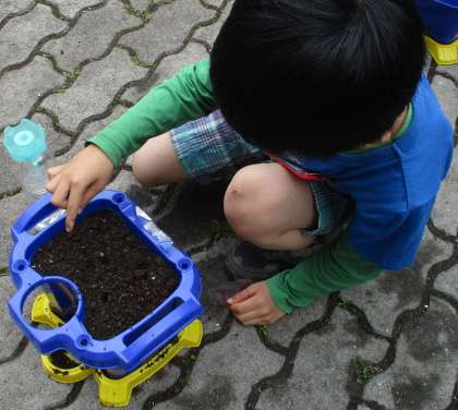 花を育てるために必要なものを考えてから思いをこめて種をまくことができました。