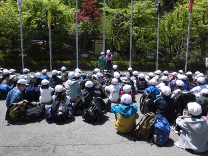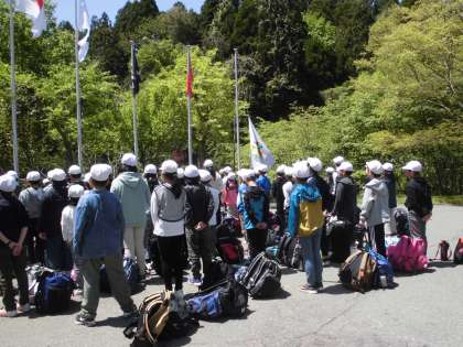 着いてすぐ入所式がありました。花脊の空に,大塚の旗を揚げました。新緑の季節でとても空気が気持ちよく感じます。