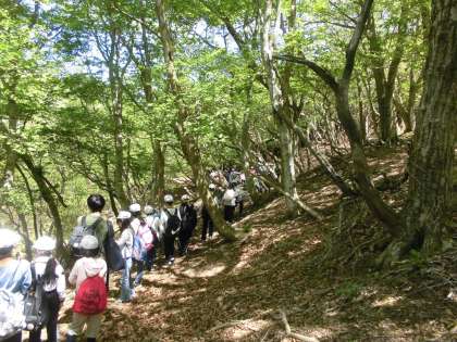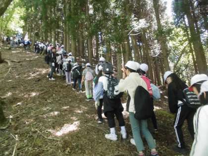 登りと違う道から下山をしました。下山というと降りていくと思っていたら、登りと同じように下ったり上ったりを繰り返す道でした。上りには、ロープをもって登るような道もありました。下山もみんなで声を掛け合いながら頑張りました。