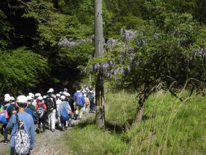 もう合計4時間以上歩いた子どもたちの足はクタクタです。それでも、最後まで、一歩一歩、歩き続け、山を下りました。