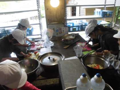 冒険の森で楽しんだ後はいよいよ最後の活動、野外炊事です。
