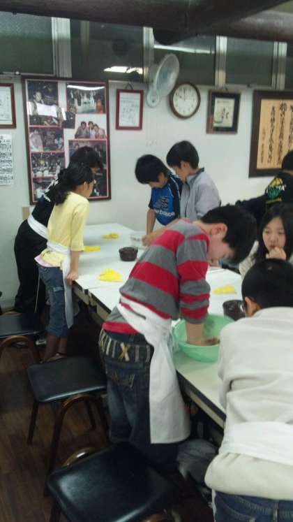 初めての子も多く,楽しそうにわいわい言いながらうどんを打っていました。