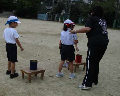 今日は、50m走を走り終わった後に得点のカードをもらう練習をしました。