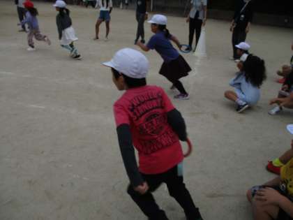 クラスの友だちにバトンをしっかりつないで走り切りました!