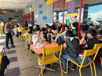 レゴランドに無事到着し、お昼ごはんのお弁当を食べています。