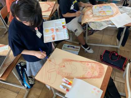 図画工作科では、「歯のポスター」の作品作りを行っています。歯の様子を詳しく描き、色付けに挑戦しています。