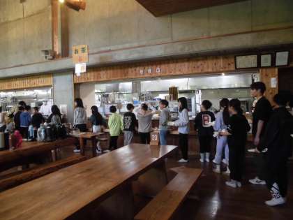 初めての食堂利用に少しドキドキしながら、順序良く並んで自分の食べたいものを選んでいただきますをしました!朝からしっかり食べて活動に備えました。