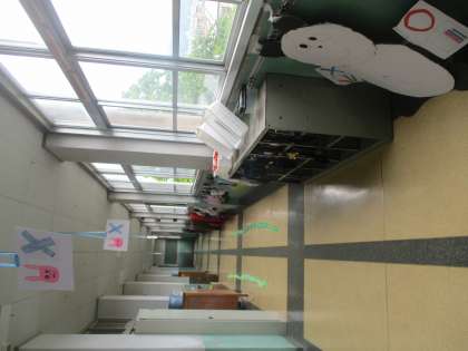 図工「笑顔が生まれるしかけ」では、学校の中に、ちょっとした笑顔がうまれるしかけを考え、班で制作をしました。右側を歩く工夫や、ドアを閉めたくなる工夫など、子どもたちのナイスアイデアで素敵な作品ができました。