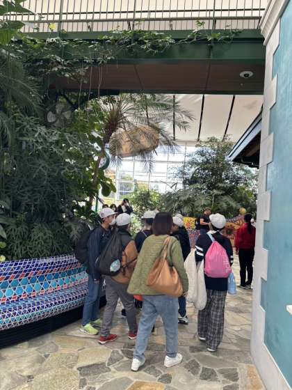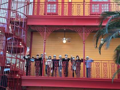 ジブリパークの大倉庫を見学しています。ジブリパークは完全にグループ活動です。それぞれに立てた計画に従って協力して活動しています。