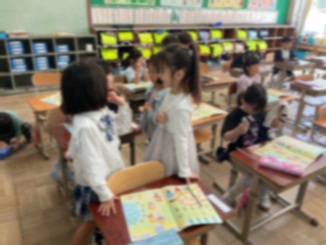 算数では、「なかまさがし」の学習をしました。線を結ぶと、どれとどれが仲間か分かりやすかったですね!友達と意見の交流もできました。