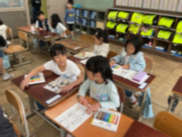中間休みには、友達とお絵描きしたり、色塗りをしたりしています。少しずつお友達が増えてきました!