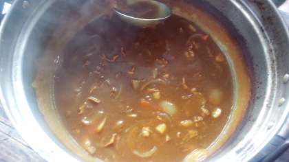 できました!♪ジャガイモ玉ねぎとろーりとけてる♪カレーです。ご飯も美味しく炊けていました。「自分たちで作ったとは思えないくらい美味しい!」という声も…大成功!